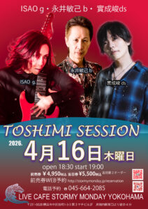 さらに詳しく »TOSHIMI SESSION -永井敏己・ISAO・實成峻-